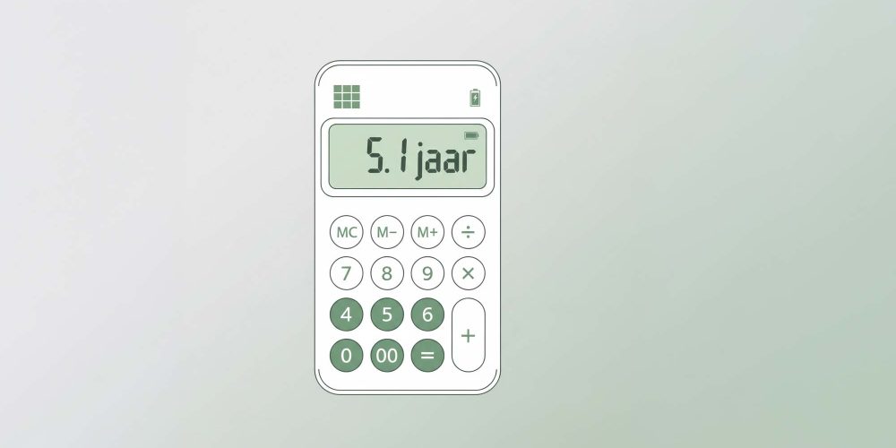 Aankoopprijs ÷ jaarlijkse besparing = terugverdientijd in jaren