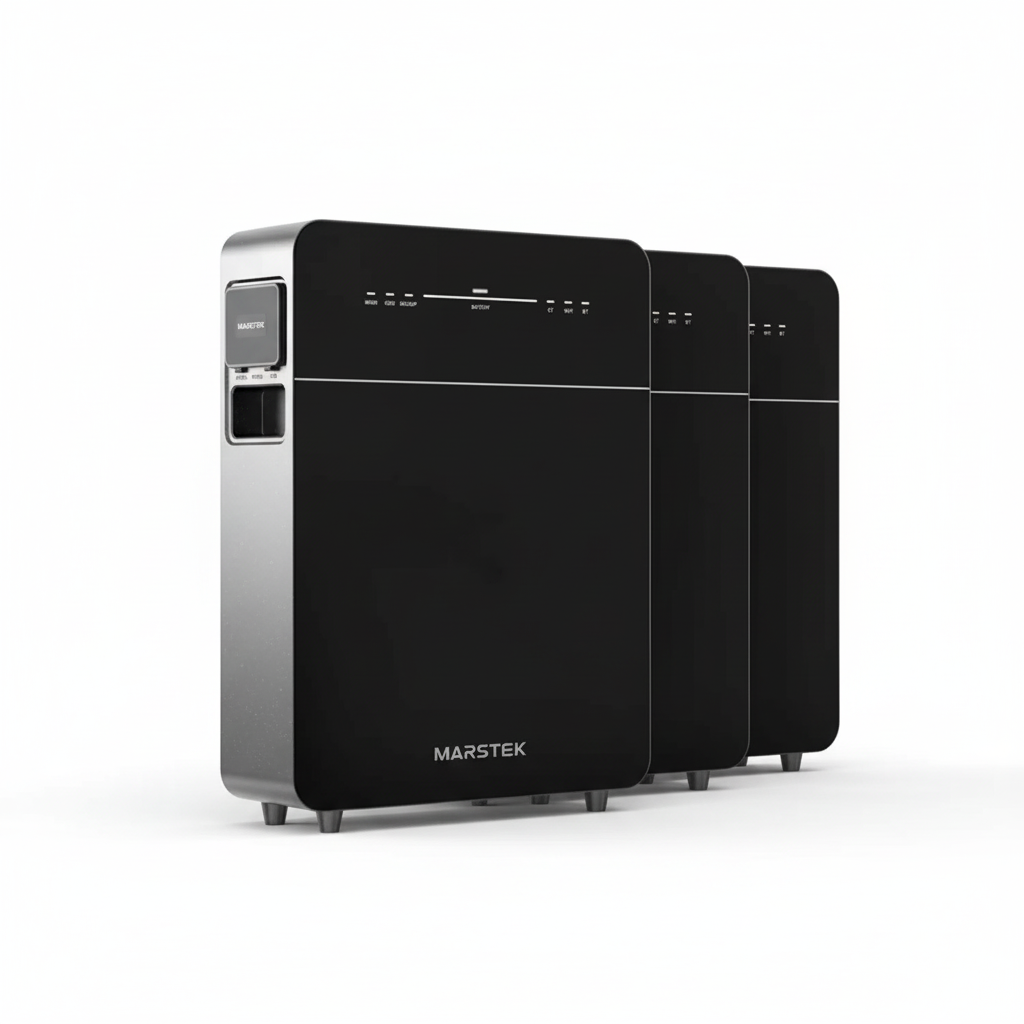 De Marstek Venus E V3.0 is een geïntegreerd systeem, waarbij de omvormer en opslag in één behuizing zitten. Het kan aan de muur gemonteerd worden of op pootjes op de vloer staan.