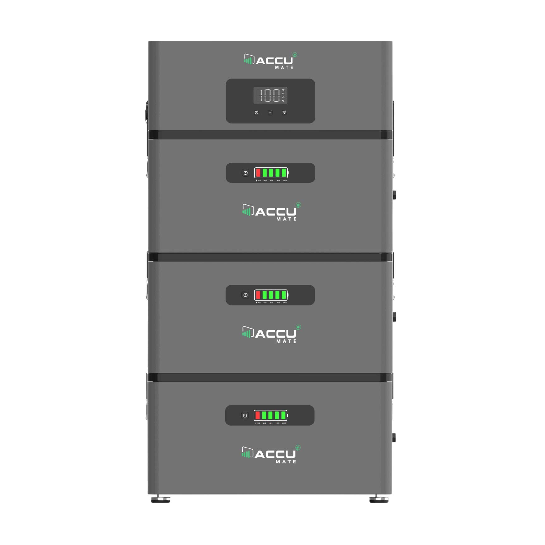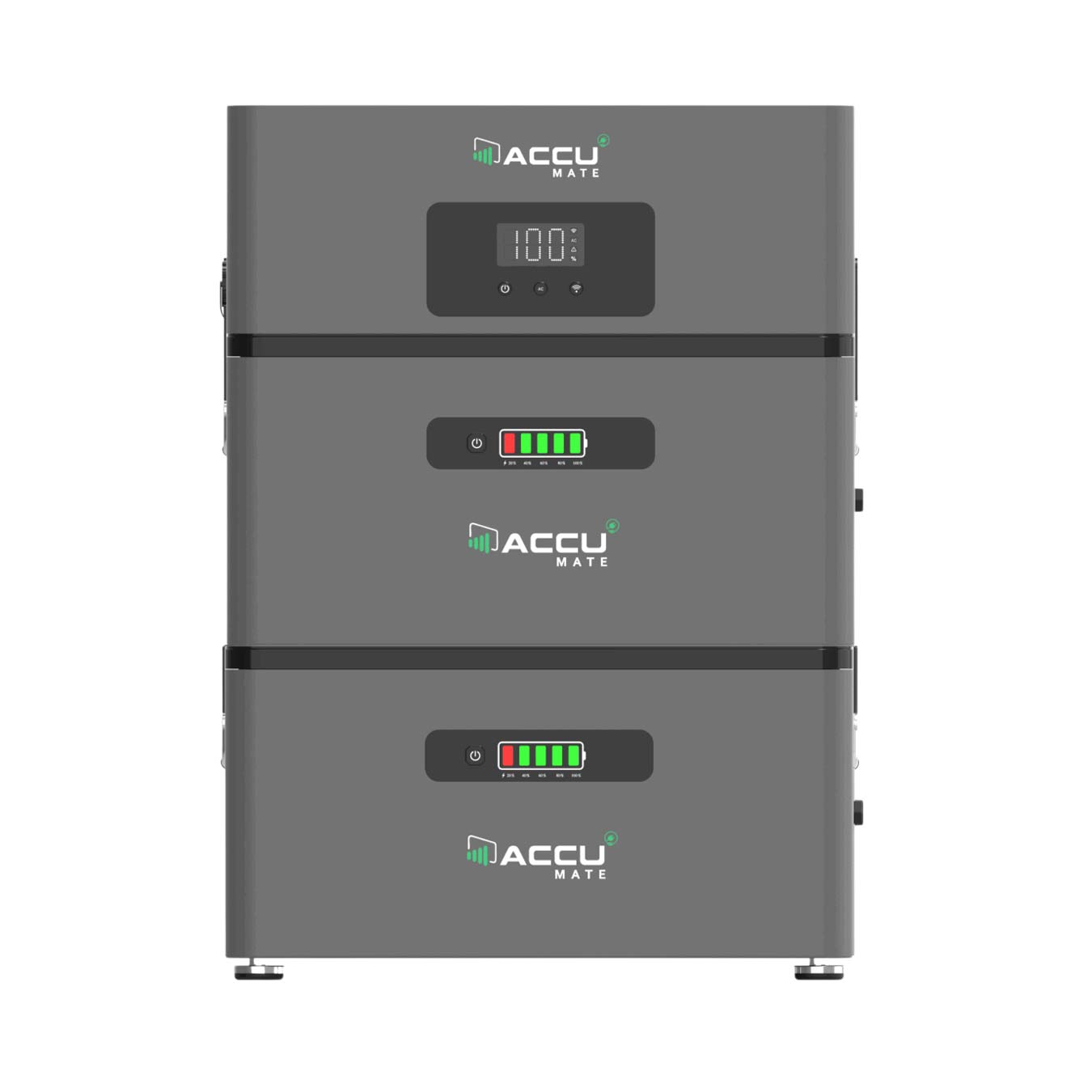 De AccuMate biedt 2,4 kWh opslag per module en is eenvoudig uit te breiden tot 12 kWh. Daardoor is hij geschikt voor zowel kleinere huishoudens als gezinnen met een hogere energiebehoefte.