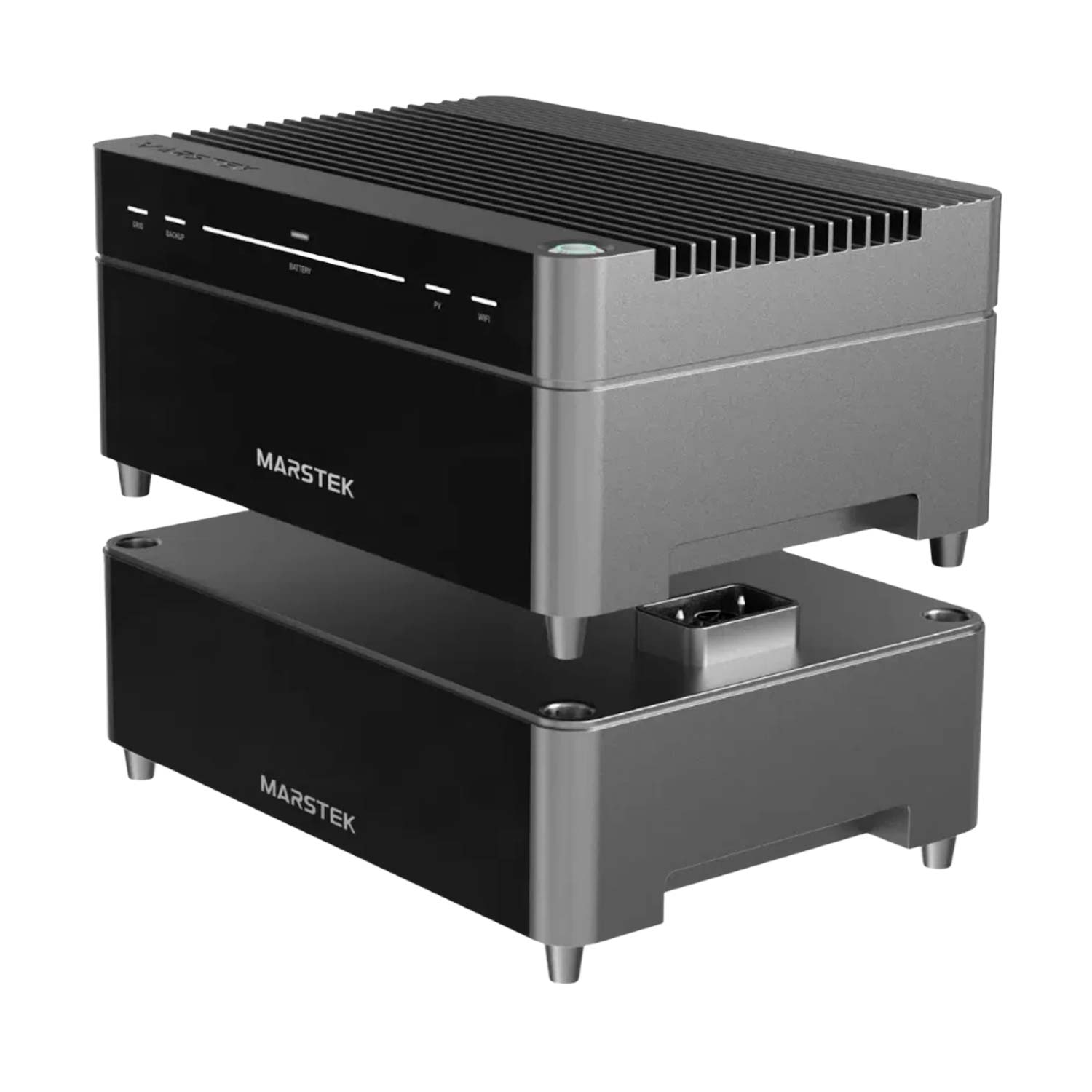 De Marstek Venus E V3.0 is een geïntegreerd systeem, waarbij de omvormer en opslag in één behuizing zitten. Het kan aan de muur gemonteerd worden of op pootjes op de vloer staan.